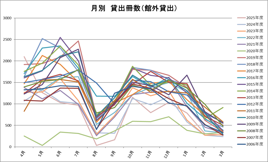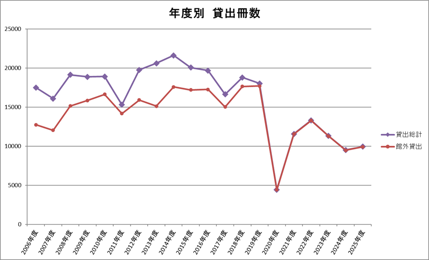 | 城西大学水田記念図書館 貸出冊数2006〜2025年度 | |||||||||||||||