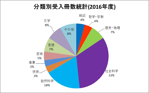 | 分類別受入冊数統計10区分 (2016年度) |