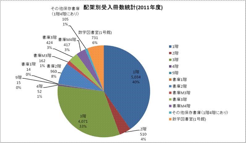 | 配架別受入冊数統計(2011年度) | ||||||||||||||