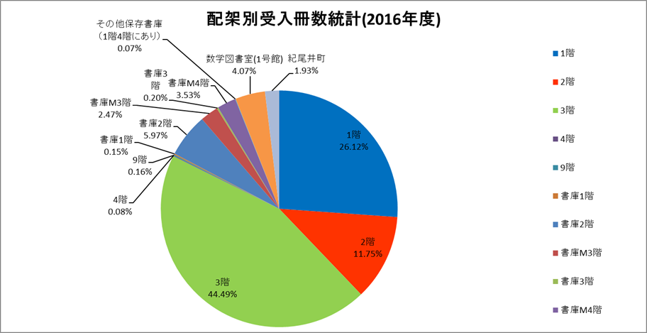 | 配架別受入冊数統計(2016年度) | |||||||||||||