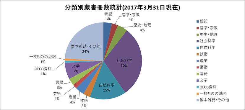 | 分類別蔵書冊数統計10区分 (2017年3月31日現在) |