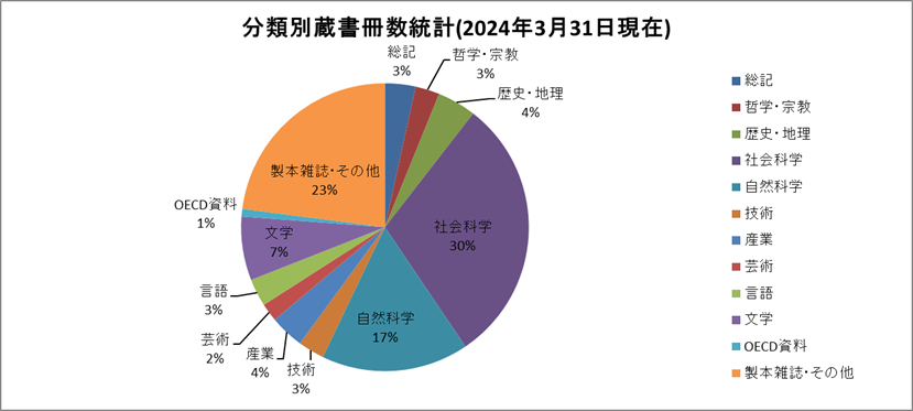 | 分類別蔵書冊数統計10区分 (2024年3月31日現在) |