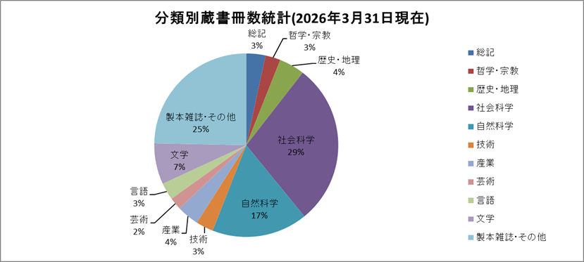 | 分類別蔵書冊数統計10区分 (2026年3月31日現在) | ||||||||||||