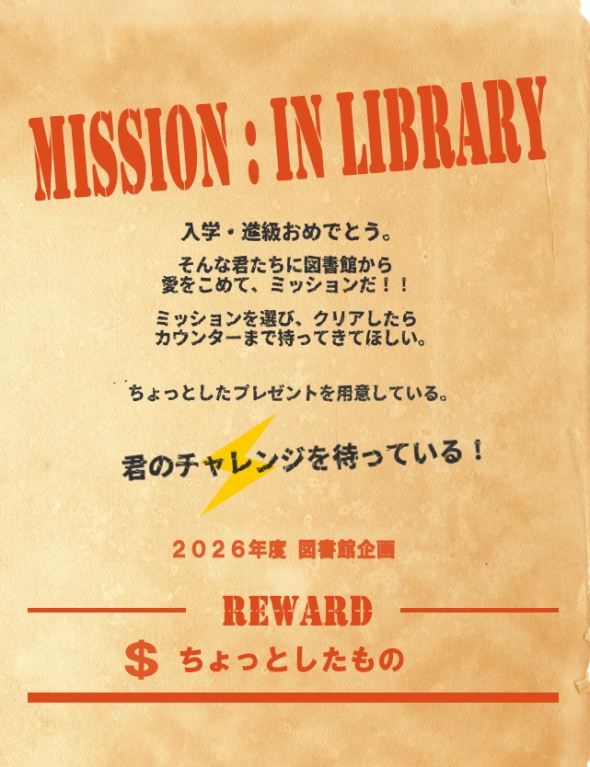 図書館でビンゴ企画「MISSION IN LIBRARY」を開催中!