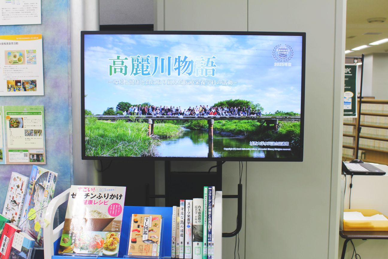 本展示は、水田美術館の特別展「高麗川物語」に連動し、医療栄養学科が地域とともに進めてきた教育・研究・社会貢献の取り組みを紹介するものです。