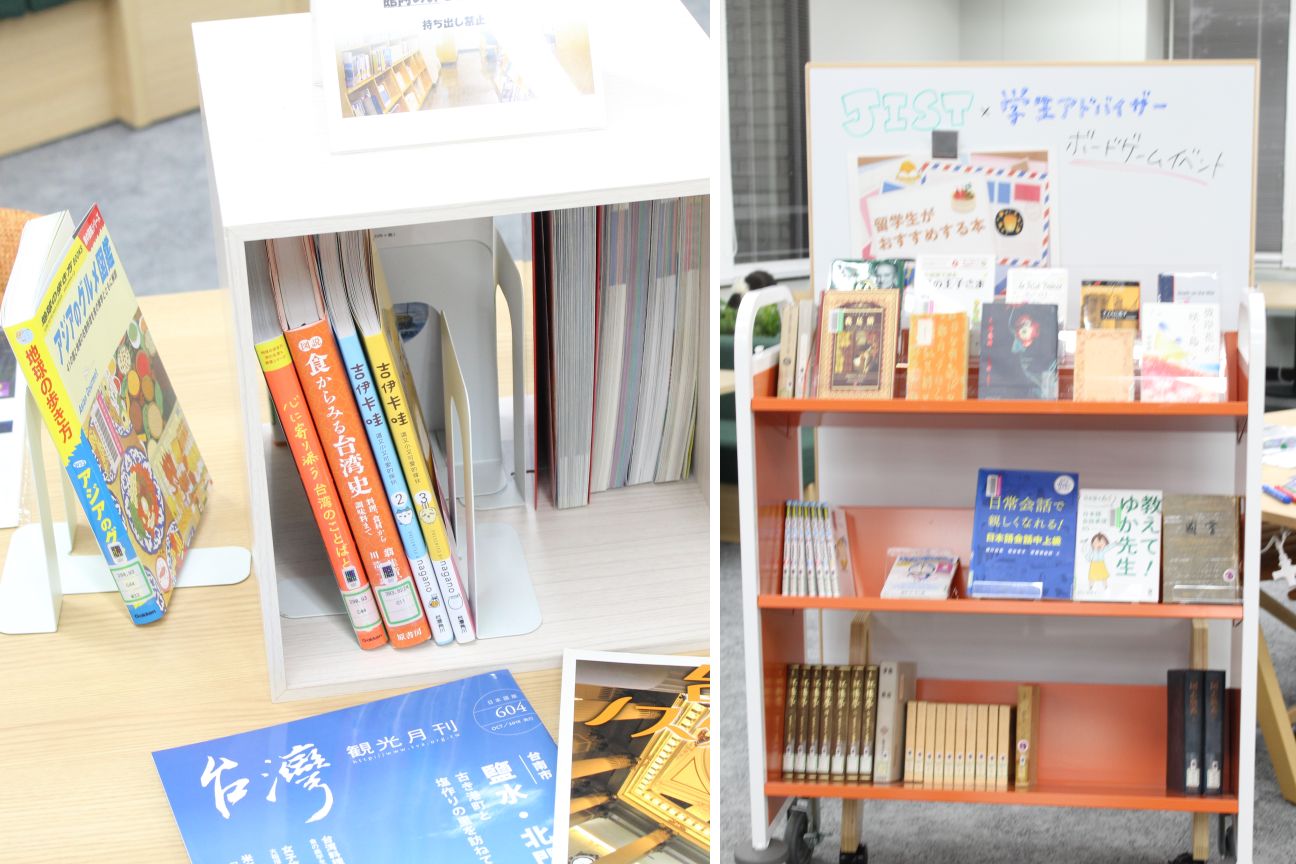 JISTが集めたボードゲーム、および関連本を1階に展示しました。