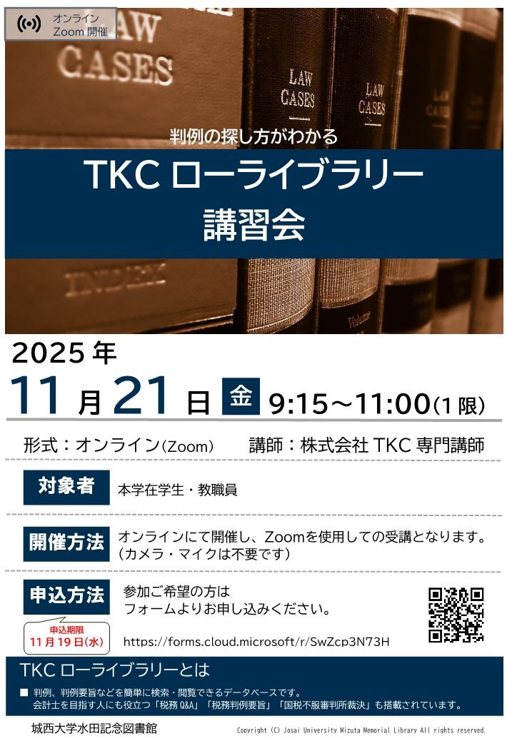 判例の探し方がわかる「TKCローライブラリー」講習会を開催します。