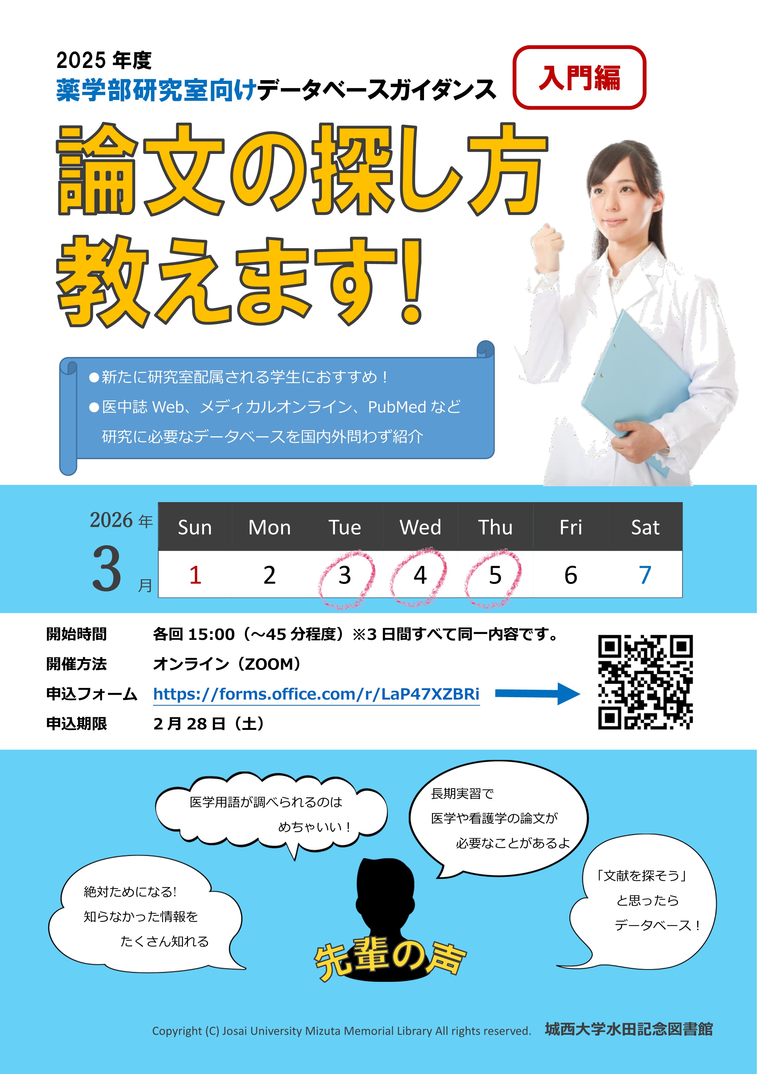 新たに薬学部の研究室へ配属された学生に向けて、研究に必要なデータベースの基本についてお伝えします。