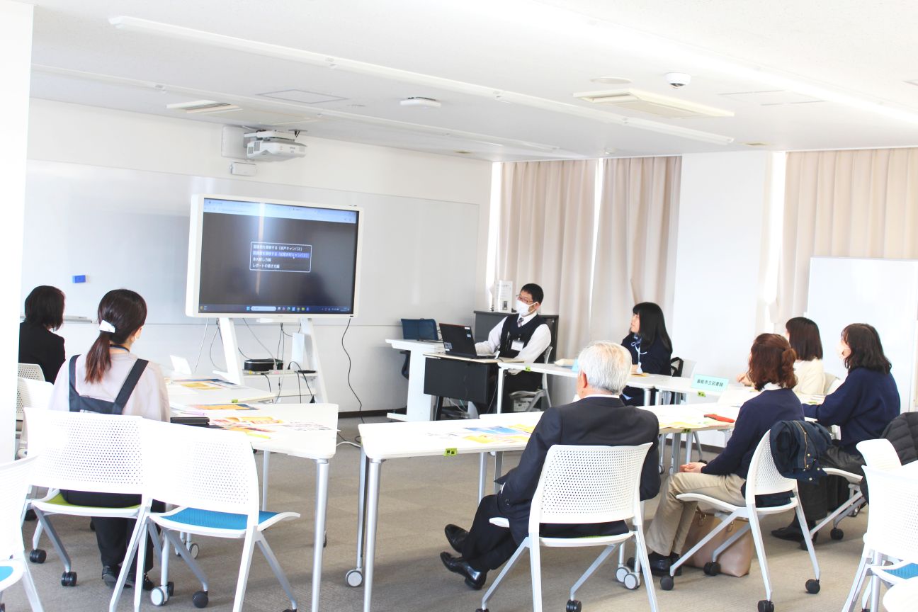 3月24日(火)、当館7階ラーニングコモンズにて合同研修会を開催し、9名が参加しました。 「図書館広報の作成方法」をテーマとして、各館の事例紹介、意見交換などを行いました。